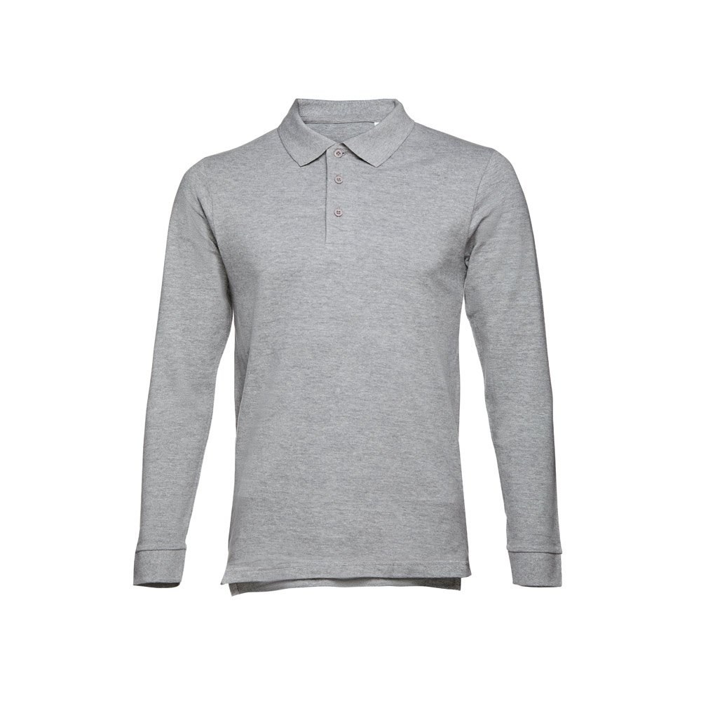 Polo unisex de manga larga en piqué cardado de algodón 100% (210 g/m²) (color 183: 85% algodón/15% viscosa). Polo de corte regular con cuello y puños de canalé. El cuello está reforzado con cinta de piqué y contiene tapeta reforzada con 3 botones a juego con el color del polo (botón de repuesto insertado en la costura interior). Pieza cortada y cosida con aberturas laterales en la parte inferior. Talla: 3XL