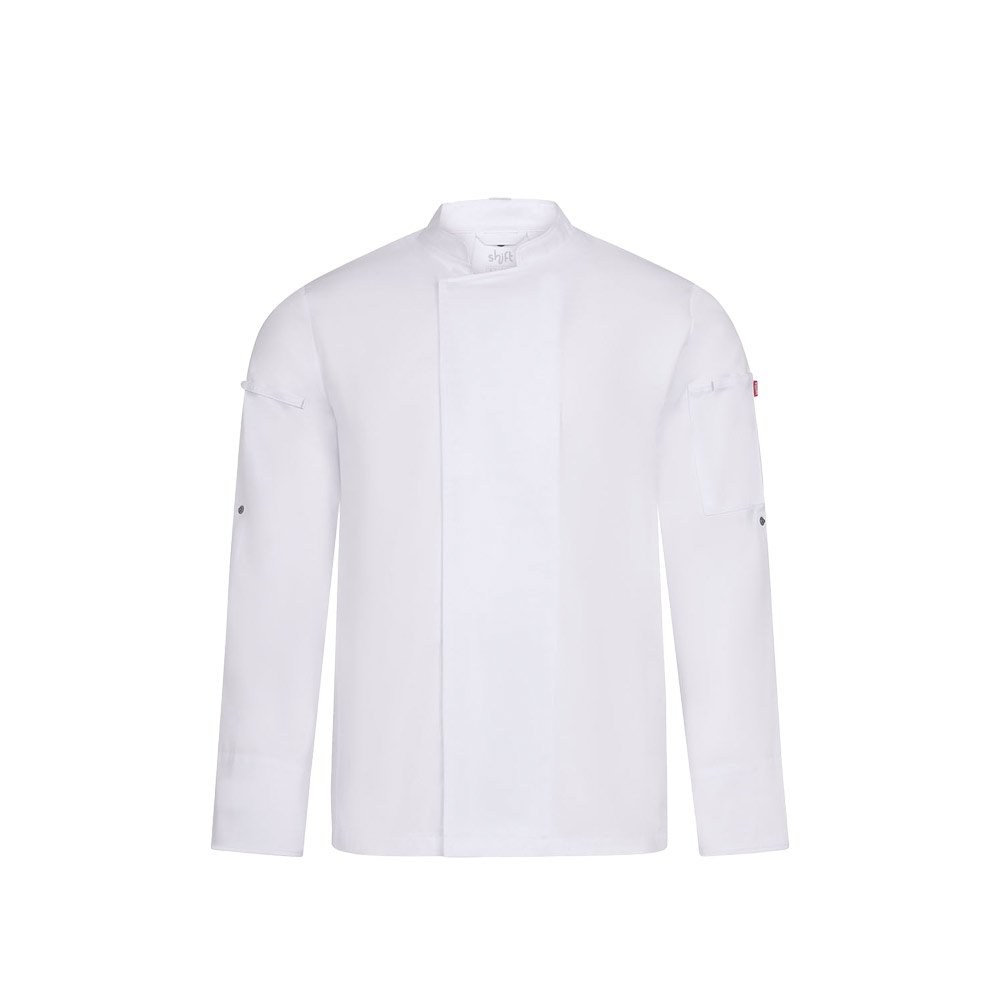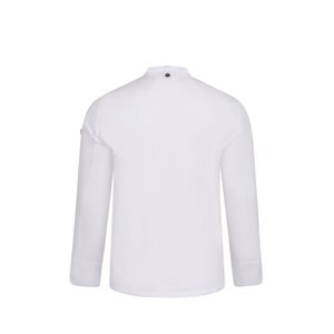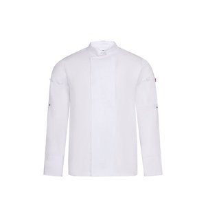 Chaqueta de chef unisex (190 g/m²) de algodón (35 %) y poliéster reciclado (65 %). Con un diseño cómodo, tejido repelente a los líquidos y tacto suave, y una espalda con tejido COOLMAX transpirable. La chaqueta tiene una cremallera central con botones ocultos. Talla: S, M, L, XL, 2XL, 3XL